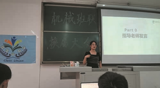 下午3时,换届大会正式开始。首先是指导老师发言环节,贾西贝老师对班联过去一年取得的成就和工作成果表示高度的赞扬,阐述了班联未来的工作规划,并对即将上任的新一届会长和部长表达了自己的期待。
