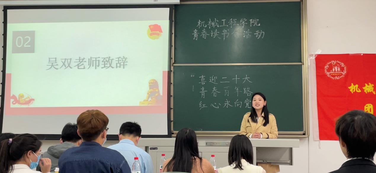 答辩伊始,团建中心指导老师吴双为本次青春读书会主题活动致辞。吴双老师殷切叮嘱青年学生要通过读书增加理论修养,加强内在涵养,提升对美的认知和辨别能力,真正做到德、智、体、美、劳五育并举,成为全面发展的社会主义合格建设者和接班人。