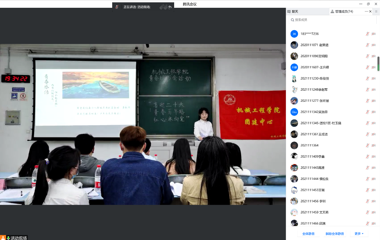 2022年5月19日晚19时,“喜迎二十大,青春百年路,红心永向党”——青春读书会活动决赛答辩于X2233举行。为积极配合学校疫情防控工作,本次比赛采用“线下答辩,线上直播”的方式同步进行,新葡的京集团8814vip党委副书记张江泉老师及各年级辅导员老师作为评委出席本次答辩会。